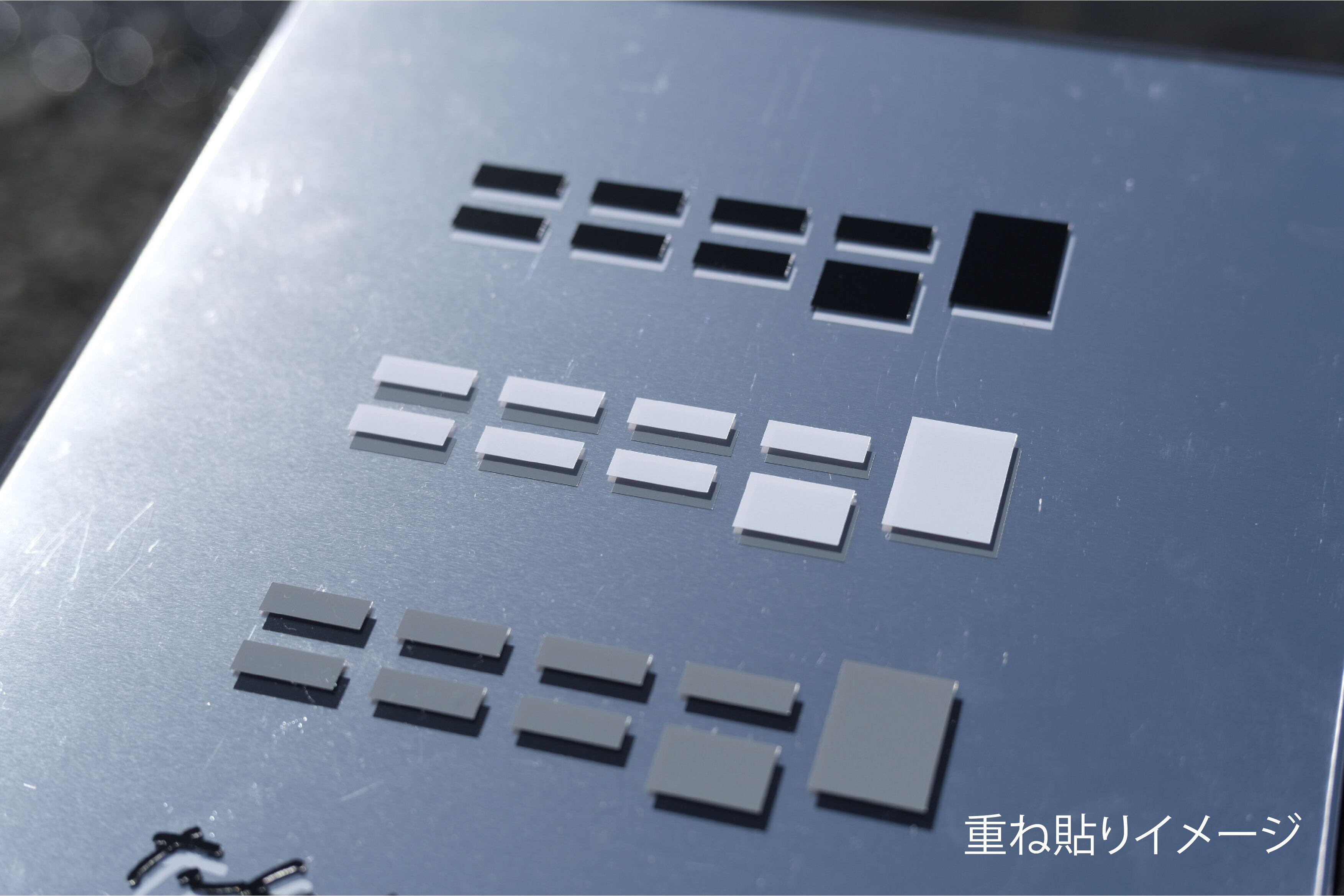 定番のBLACKやWHITEに加え、ブランドカラーのGRAYを制作しました。中間色ですのでBLACK×GRAY や WHITE×GRAY の重ね張りをしたときに非常にきれいにまとまります。同型ステッカーを少しずらして貼ることで立体的な装飾をすることができます。またサイズは幅10cmですのでスマホの裏側などにも貼り付け可能です。もちろん屋外耐候性もありますのでお手持ちのコンテナやクーラーボックスなどにもご使用いただけます。カッティングステッカーのきれいな貼り付け方法はYouTubeなどをご確認ください。業界を先駆する加工技術で非常に繊細なカッティングを実現することができる企業さまにて製作していただきました。