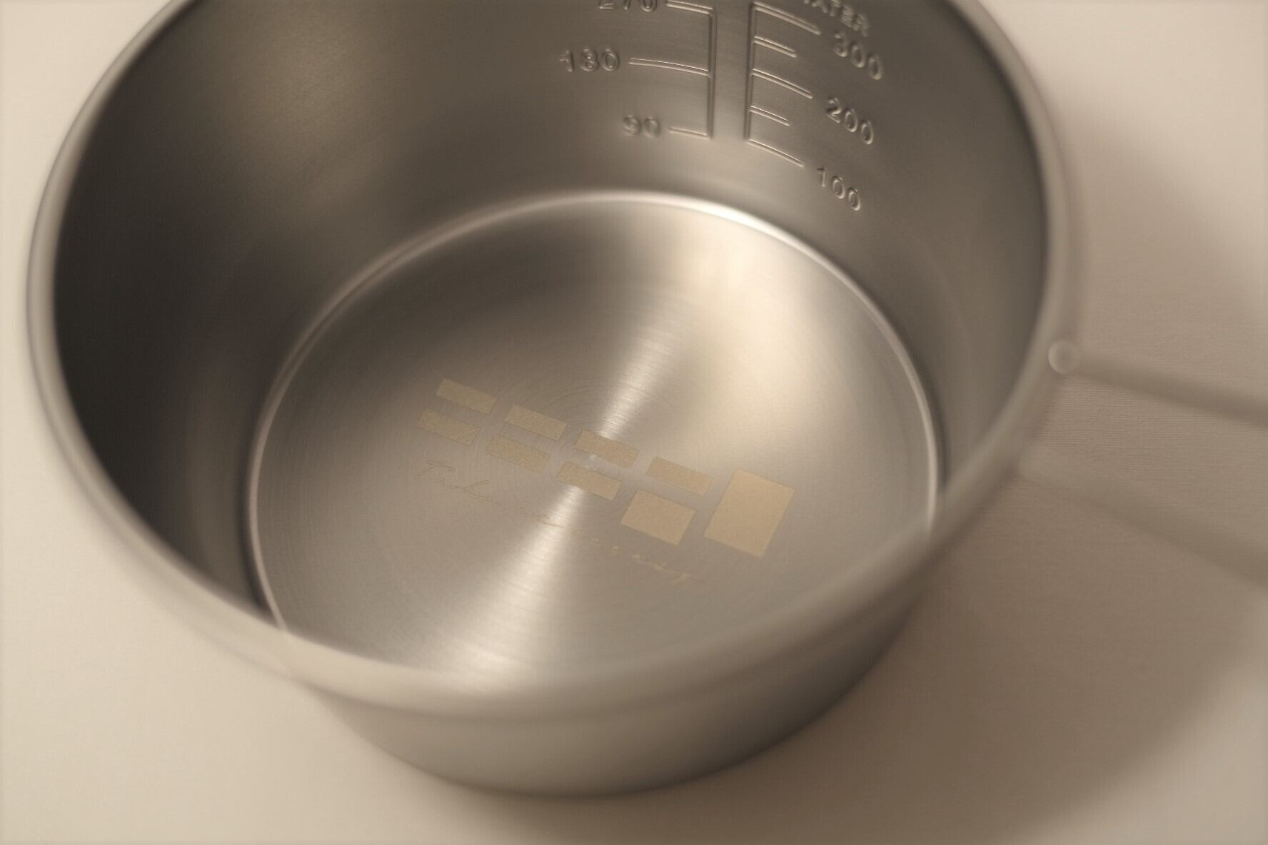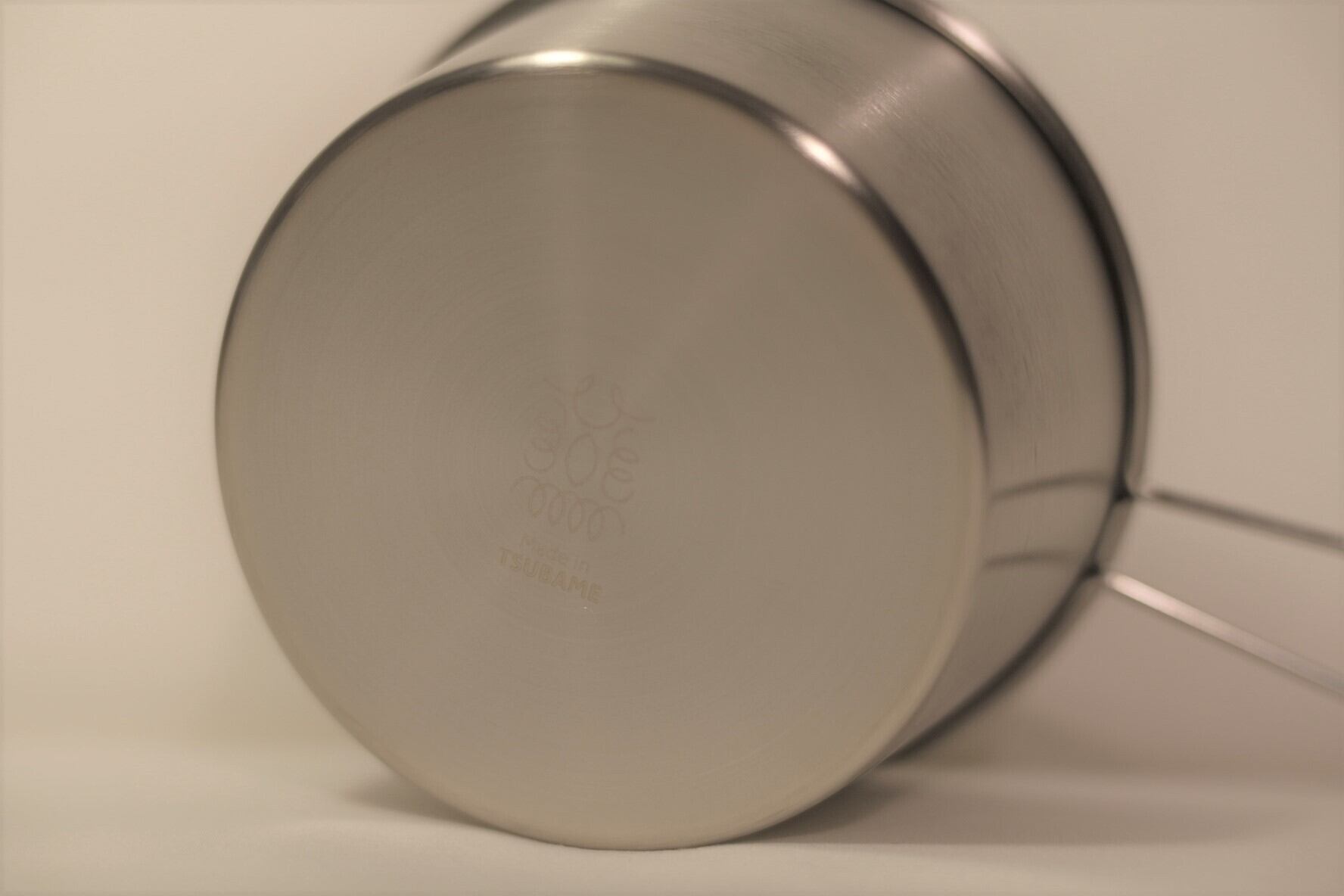 「Made in JAPAN」のクオリティにこだわっています。重厚感のあるステンレス地ラセン仕上げに上品な白色刻印。良い素材が高度な技術で加工されていることがお分かりいただけるかと思います。上品な見た目とはいえ道具ですのでガシガシお使いください。私は1回目の使用で炊飯しましたが吹きこぼれの焦げが付きました。